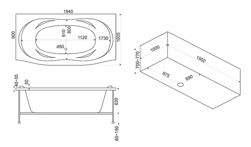 - использование при производстве ванн алюминиевых матриц, за счет которого достигается правильная геометрия изделий, что дает возможность ставить ванны как впритык к стене, так и под плитку с идеальными зазорами.