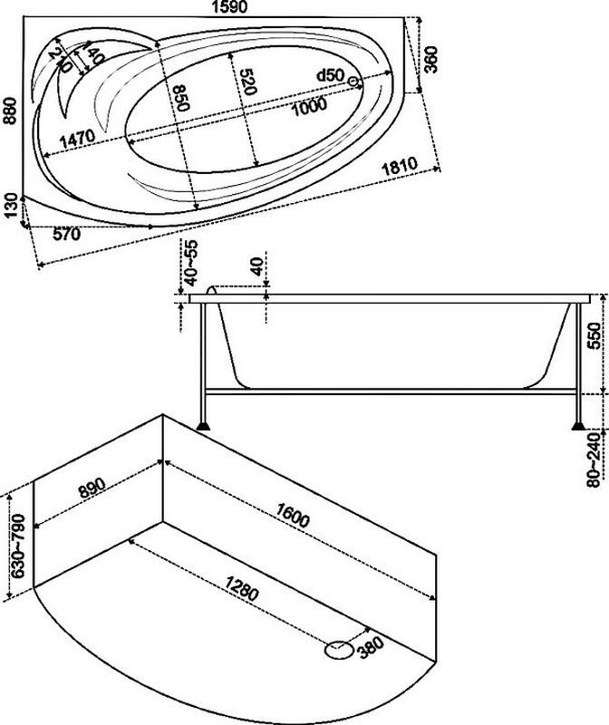 - наличие идеальной геометрии по горизонтальной плоскости борта дает возможность устанавливать на борт ванны шторки.