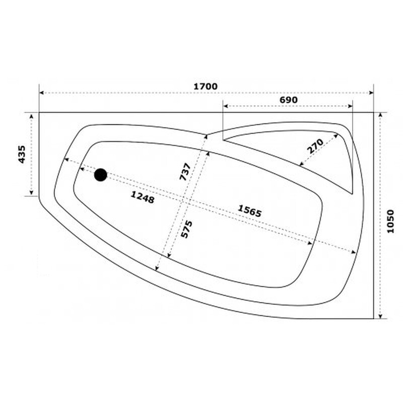 Ванна акрил "КАМЕЯ -PRO" правая 170х105 BAS PROfessional 100% литьевой акрил БЕЗ АВТОСЛИВА в компл. с каркасом (без фолдона) ВА0122