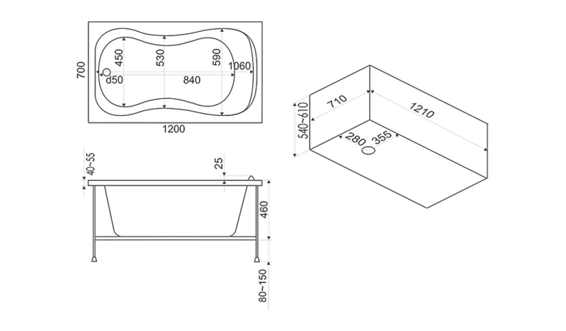 - наличие идеальной геометрии по горизонтальной плоскости борта дает возможность устанавливать на борт ванны шторки.