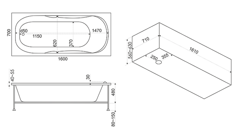 - использование при производстве ванн алюминиевых матриц, за счет которого достигается правильная геометрия изделий, что дает возможность ставить ванны как впритык к стене, так и под плитку с идеальными зазорами.