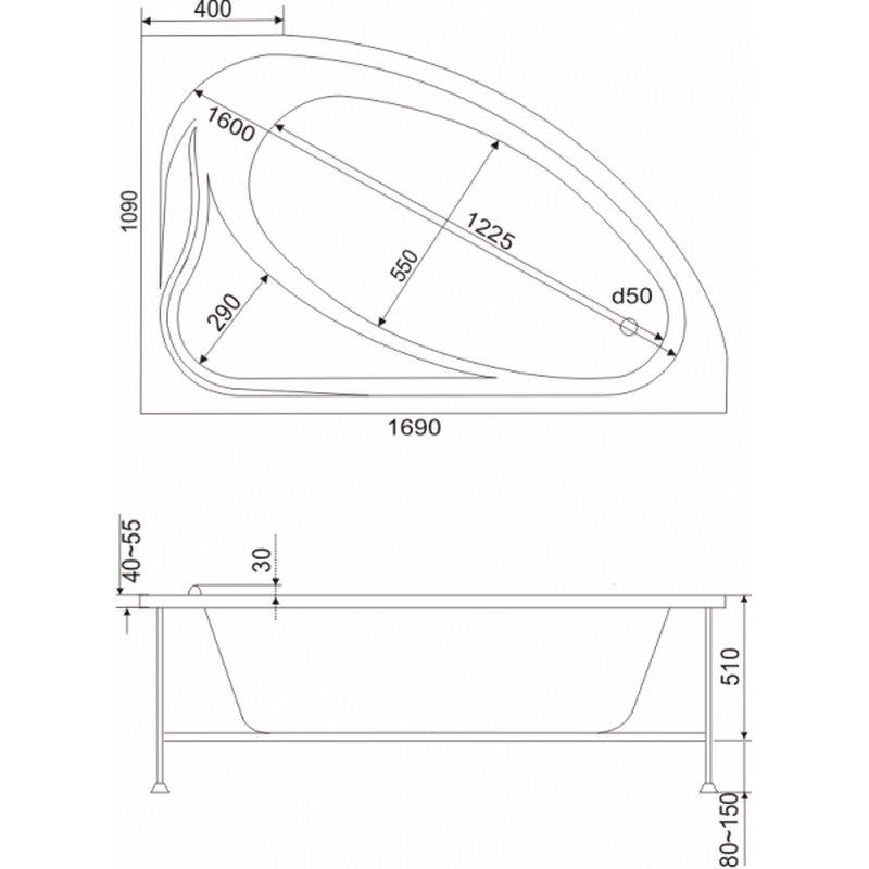 - наличие идеальной геометрии по горизонтальной плоскости борта дает возможность устанавливать на борт ванны шторки.