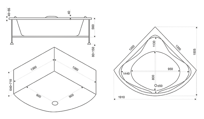 - наличие идеальной геометрии по горизонтальной плоскости борта дает возможность устанавливать на борт ванны шторки.
