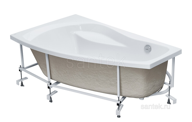 Ванны Santek производятся из 100% литьевого акрила, что обеспечивает длительную эксплуатацию изделия и полностью исключает опасность расслоения. Ванны долгое время сохраняют тепло, обладают стойкостью к химическим и физическим воздействиям, легки в уходе. Белоснежно-белый цвет акрила идеально совпадает с цветом керамики Santek. Надежная конструкция упрощенного металлического каркаса, отвечающая всем требованиям, новый способ крепления панелей к ванне гарантирует привлекательный внешний вид, легкость и простоту сборки. Акриловые ванны Santek дополнительно поставляются в комплекте с фронтальными панелями, облегченным каркасом, креплениями ванны к стене и комплектом креплений фронтальной панели.