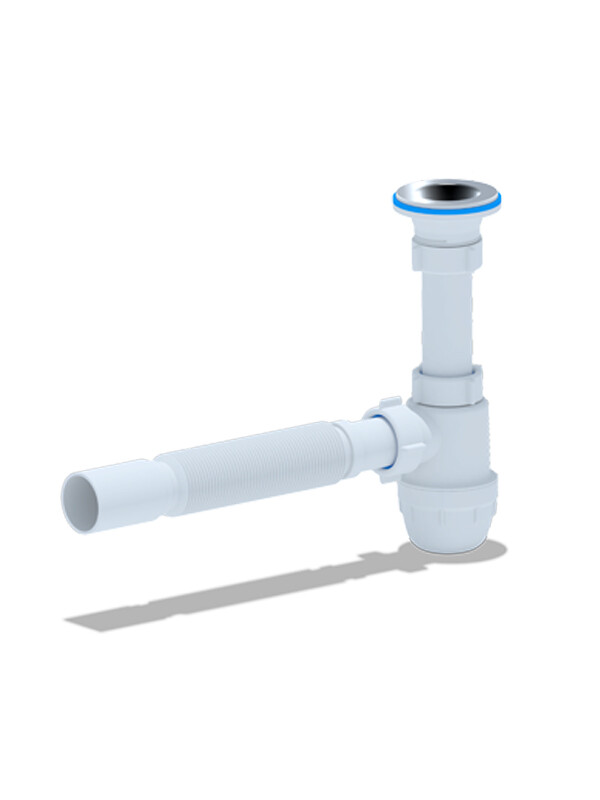 Сифон для умывальника бутылочного типа с уменьшенным корпусом. С нержавеющей решеткой 65мм. Для подключения к канализации комплектуется гибкой трубой 32*40мм
