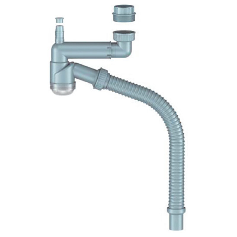 Д-11408У Сифон для кухни с выпуском 3 1/2, смещенный (телескопический), с универсальным переливом, отводом и гибкой трубой