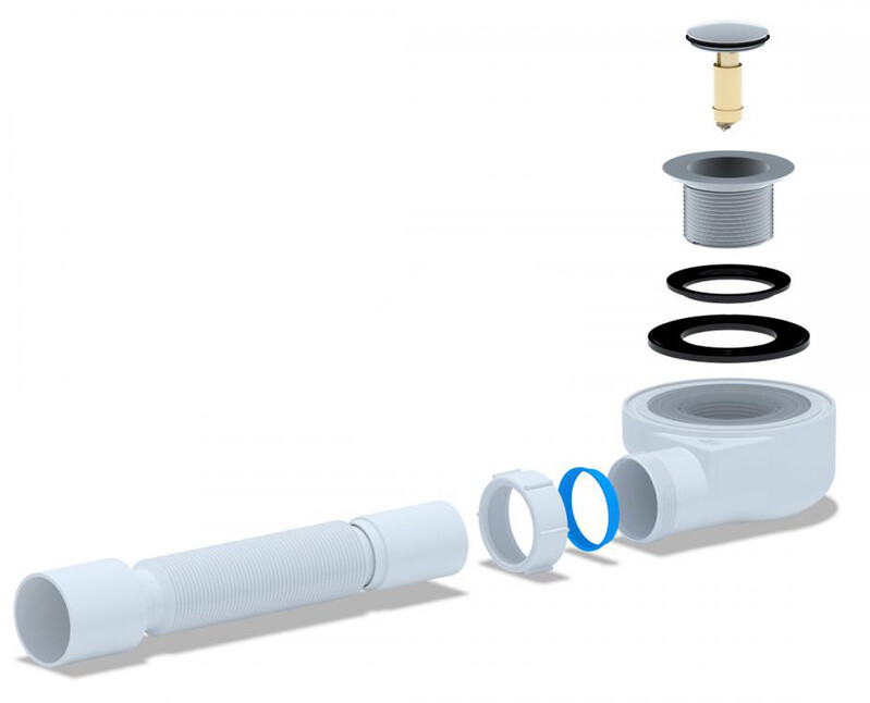 Сифон для душевого поддона со сливным отверстием 50мм. Монтажная высота 53мм