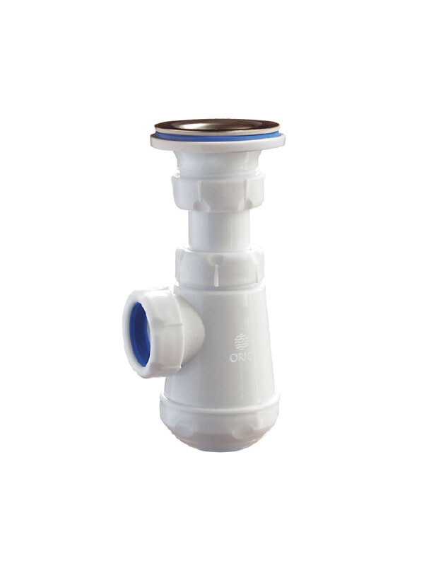 Сифон с мини корпусом и отстойником, с выпуском с нержавеющей чашкой д.63мм, для маленьких и угловых умывальников. Идеален в ограниченных пространствах под тумбочками. Необходим отвод в канализацию.