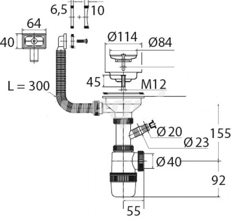 Гофрированный перелив: есть (L300 мм, прямоугольный)
