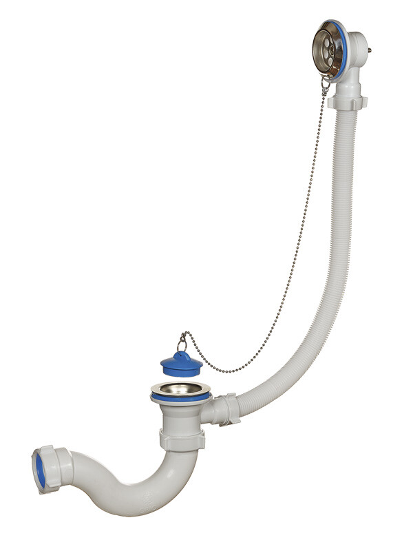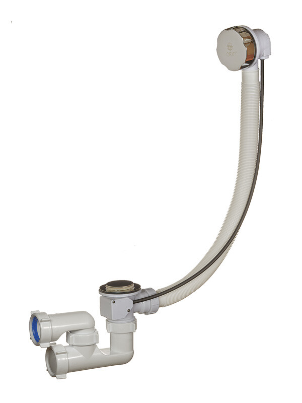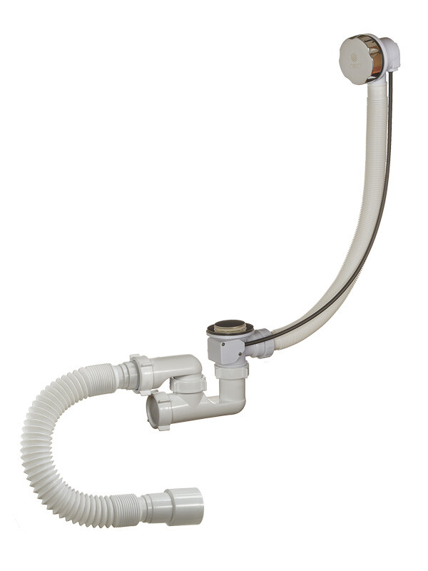 ORIO. А-28089 Cифон для ванны (обвязка) ОРИО 1 1/2"х40, регул., с перел. и гиб.трубой 40-40/50 (полуавтом)
