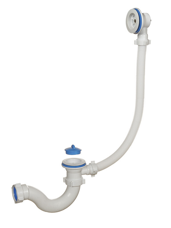 ORIO. А-70089 Сифон для ванны (обвязка) ОРИО 1 1/2"х40, с пласт.реш D=70 мм,перелив.и гиб.трубой 40-40/50