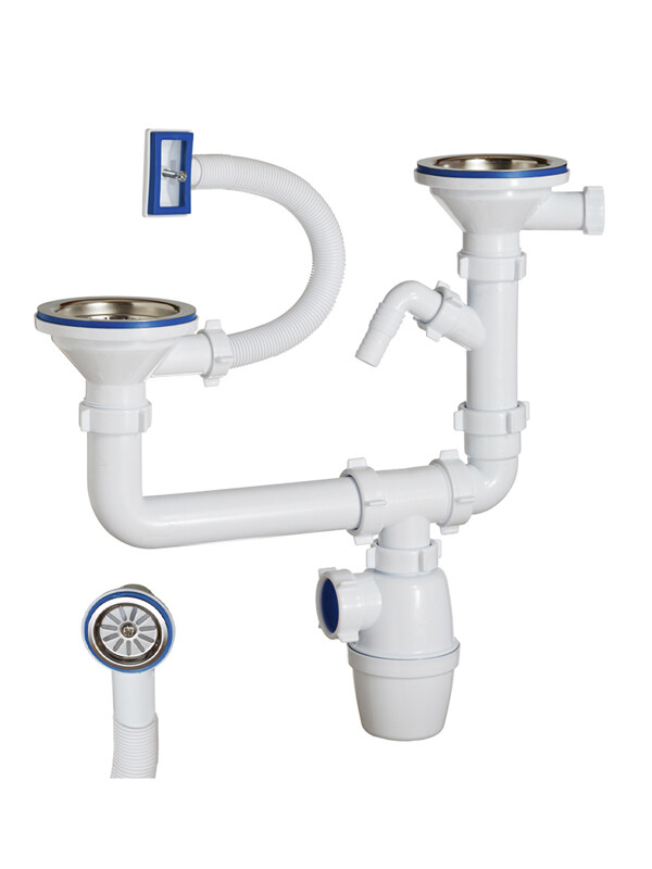 ORIO. К-40093 Сифон двойной бутылочный разноуровневый ОРИО 3 1/2" х 40 с отводом универсальным переливом