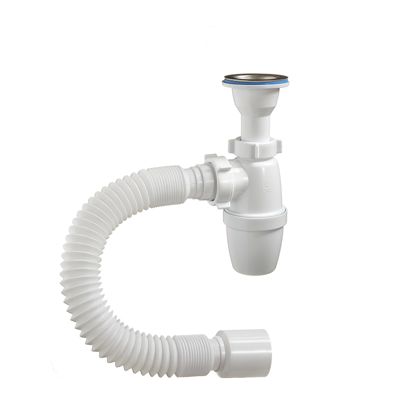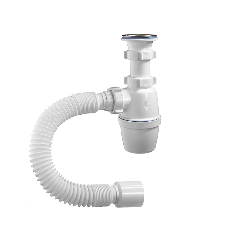ORIO. А-328921 Сифон бутылочный ОРИО малый 1 1/4" х 40 с литым выпуском и гибкой трубой 40 - 50