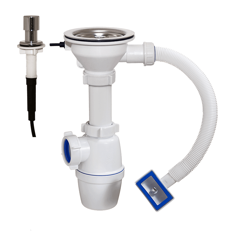 ORIO. АА-4007 Сифон бутылочный полуавтомат ОРИО 3 1/2" х 40 с прямоугольным переливом (кнопка-грибок)
