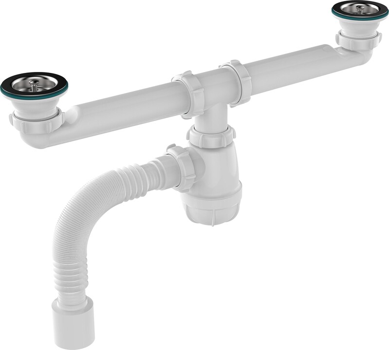 D0110-18-MR Сифон для двойных моек Aquant 1 1/2х40 метал. реш. с гибкой трубой 40х50
