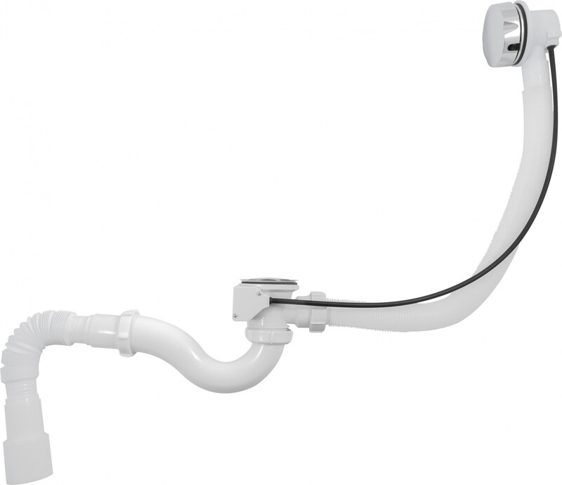 V312-18-MR Сифон для ванны регулируемый с выпуском и переливом Aquant с гибкой трубой 40х40/50 полуавтомат