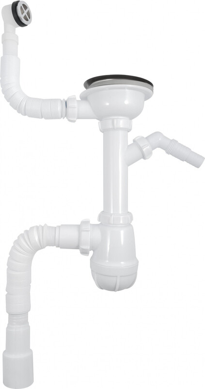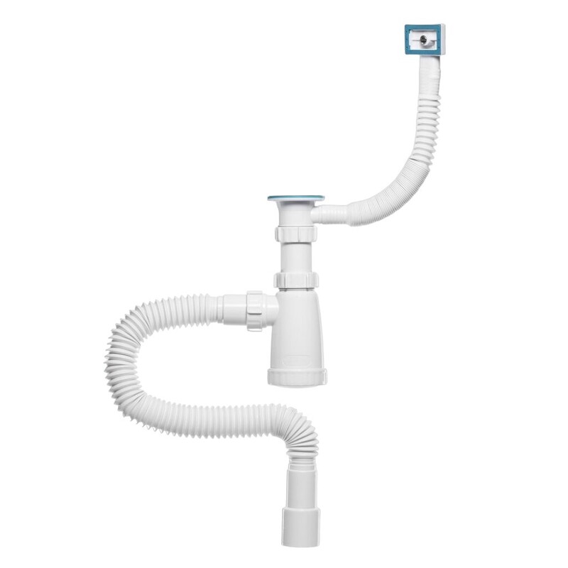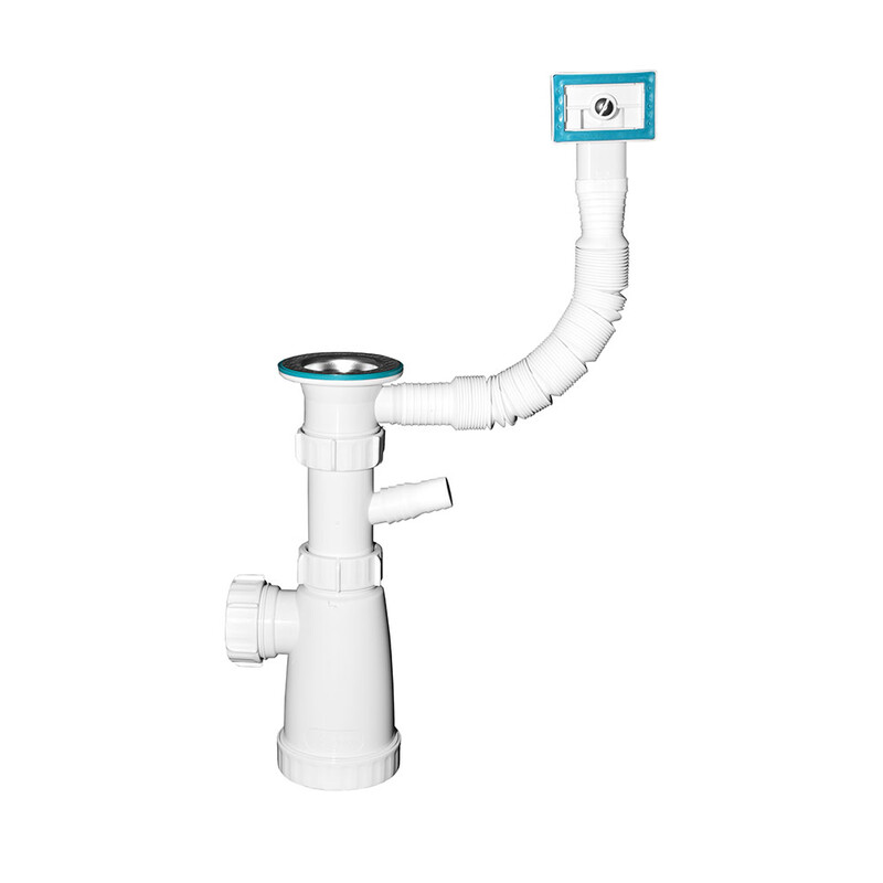 B1045-30-MR Сифон для кухни Aquant 1 1/2"х40 без выпуска с отводом с/м с гибкой трубой. 40х40/50