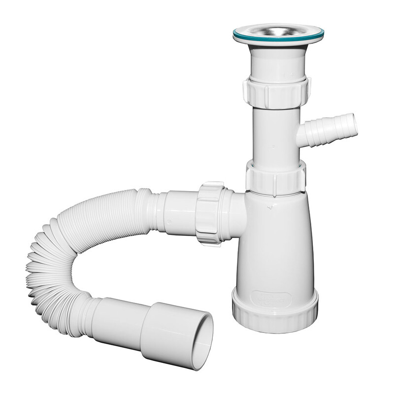 B0510-30-MR Сифон для кухни Aquant 1 1/2"х40 с удлинённой горловиной с мет.реш. . с гибкой труб 40Х50 (длина болта 60 мм)