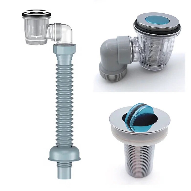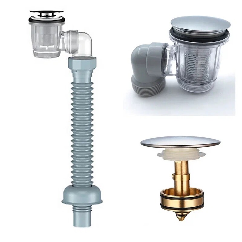 S4015-30-MR Сифон для умывальника 1 1/4" клик-клак Aquant (донный клапан с отв. перелива) с гибкой трубой 40х40/50