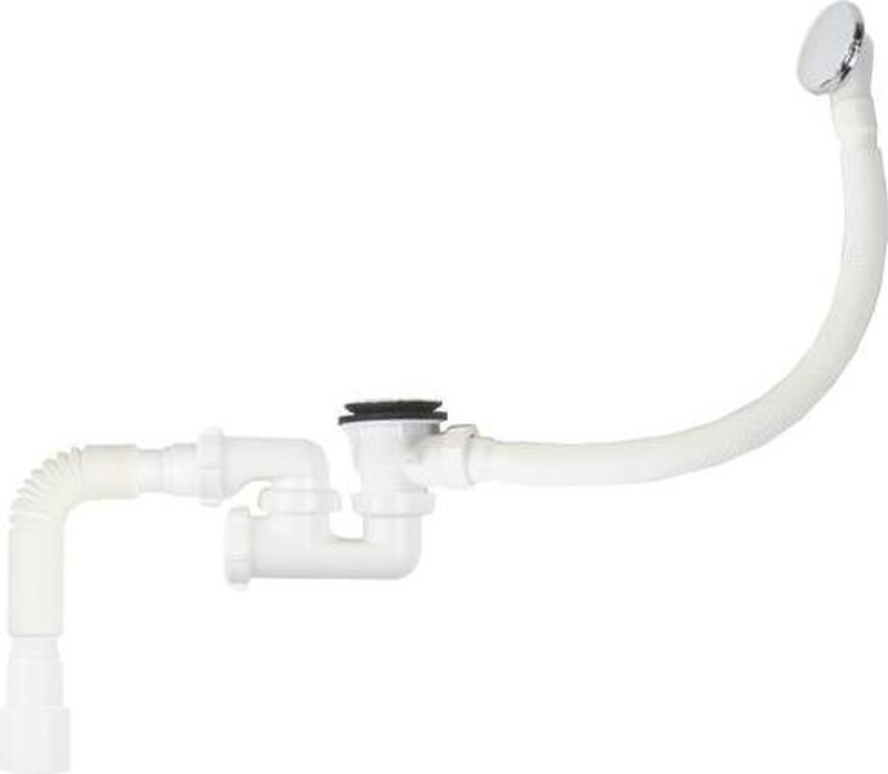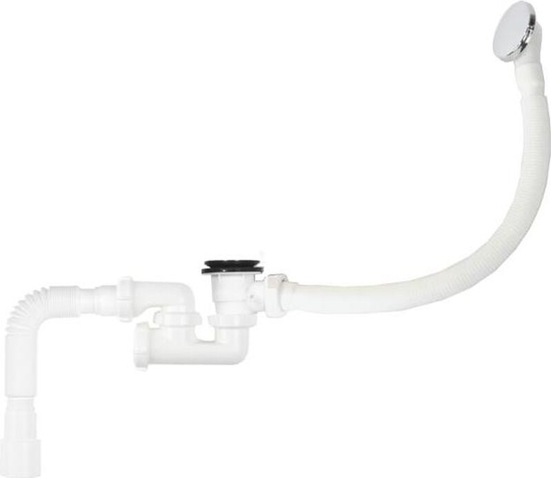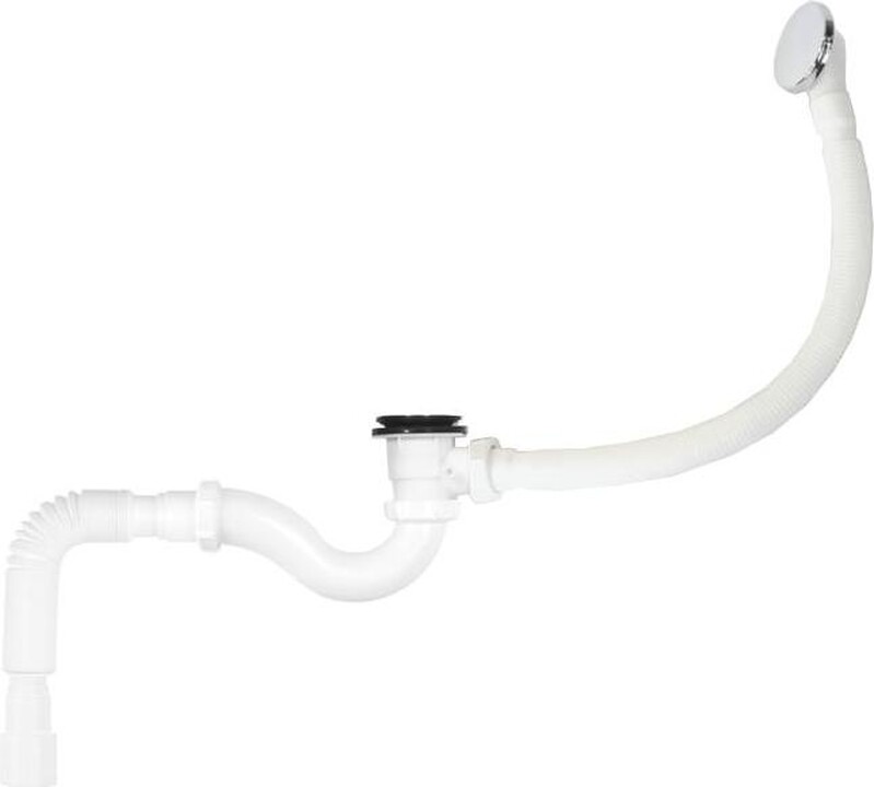 ORIO. А-21089 ОРИО сифон для ванны 1 1/2 х 40 "S"-тип, "клик-клак", с переливом ( перелив и слив металлические ) и гибкой трубой 40-40/50