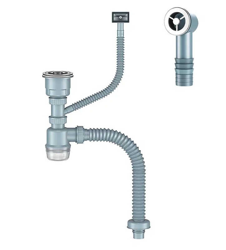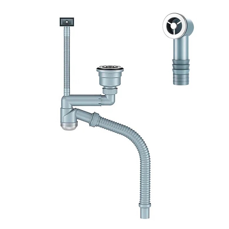 ORIO. Д-11052У Сифон для кухни с выпуском NORDFORM ОРИО 3 1/2, с универсальным переливом, корзиной для мусора и гибкой трубой