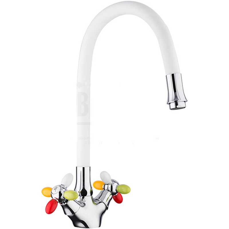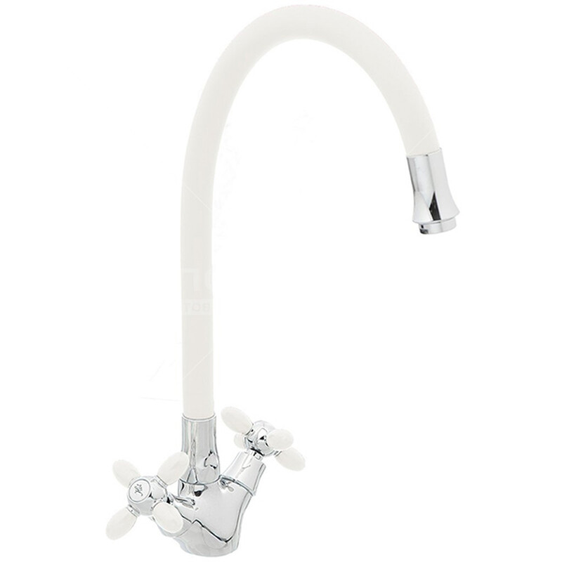 44127-7 Смеситель Кухня FRUD 1/2 м/к гибкий излив (белый/хром) на гайке