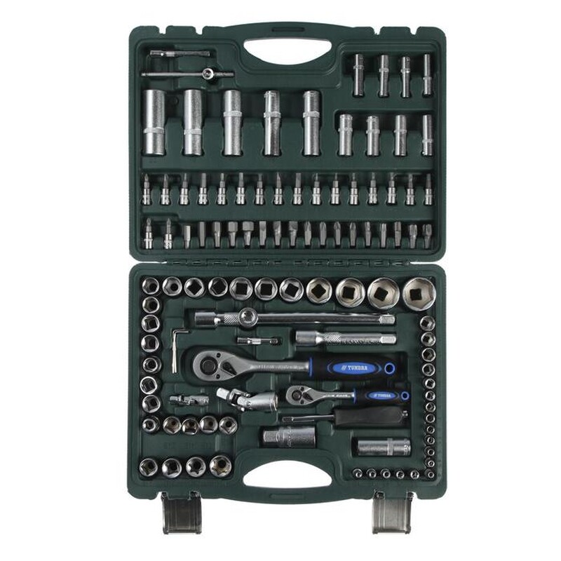 СОДЕРЖИМОЕ НАБОРА:Посадочный размер 1/2"торцевые головки, 17 шт.: 10, 11, 12, 13, 14, 15, 16, 17, 18, 19, 20, 21, 22, 24, 27, 30, 32 ммторцевые головки удлинённые, 5 шт.: 14, 15, 17, 19, 22 ммторцевые головки свечные, 2 шт.: 16 и 21 ммторцевый головки, Е-образные, 8 шт.: 10, 11, 12, 14, 16, 18, 20, 24 ммвороток с трещоткой, 250 ммудлинитель для воротка с адаптером 3/8" х 1/2", 250 ммудлинитель для воротка, 125 ммкарданный шарнирПосадочный размер 1/4"торцевые головки, 13 шт.: 4, 4.5, 5, 5.5, 6, 7, 8, 9, 10, 11, 12, 13, 14 ммторцевые головки удлинённые, 8 шт.: 6, 7, 8, 9, 10, 11, 12, 13 ммторцевый головки Е-образные, 5 шт.: 4, 5, 6, 7, 8 ммвороток с трещоткой, 150 ммвороток-отвертка, 150 ммвороток Т-образный, 110 ммудлинители для воротка, 2 шт.: 50 и 75 ммкарданный шарнирбиты с торцевыми