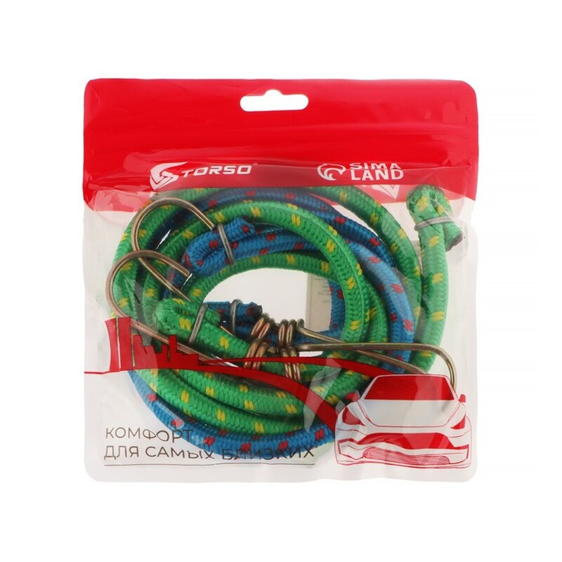 Резинки крепления TORSO надёжно зафиксируют багаж и обеспечат его сохранность при перевозке. Изделия представляют собой шнур из эластичного материала с прочными металлическими крючками на концах.