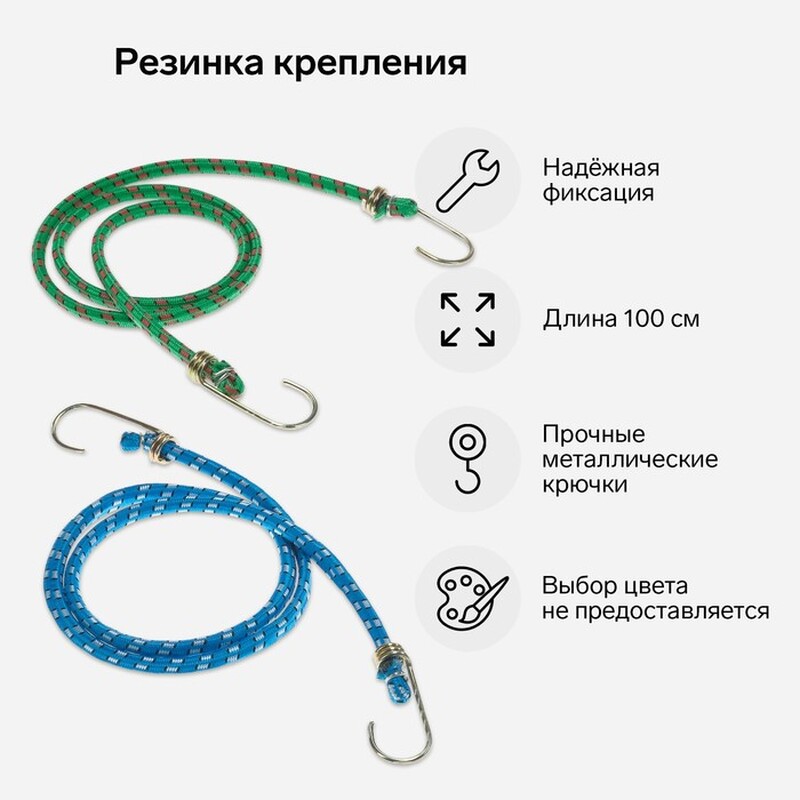 Тип крепления багажной сетки = Крючки; Количество товара в наборе = 2; Вид товара (Багажные сетки и резинки) = Резинка; Материал крепления = Нержавеющая сталь; Длина, см = 100