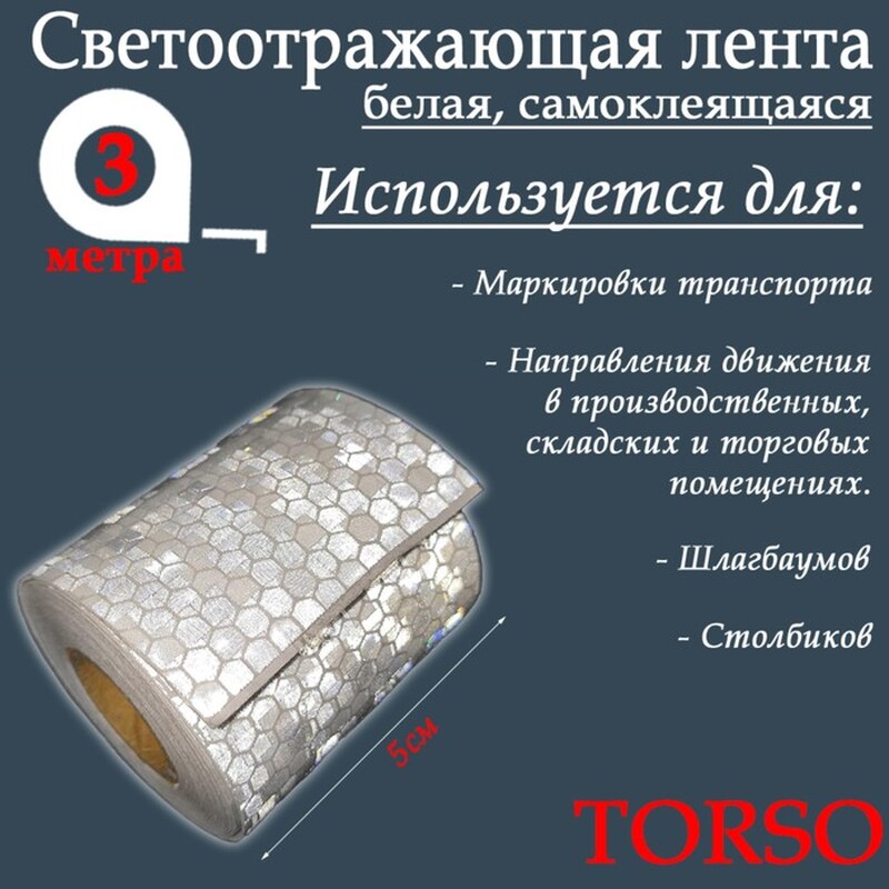 Применение: Маркировка транспорта, столбиков, шлагбаумовНаправление движения в производственных, складских и торговых помещенияхОбозначение препятствий на парковках и проездных путяхРазметка дистанции в помещениях с большим количеством посетителей