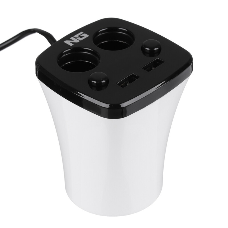 New Galaxy. Зарядное устройство в авто подстаканник, 2 гнезда прикуривателя, 2xUSB, 3.1A, блистер, пластик NG 738-026