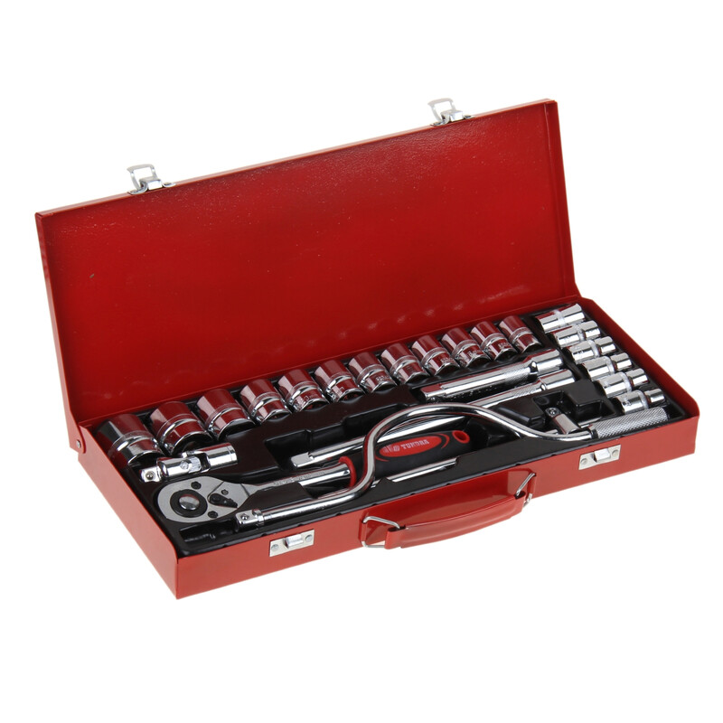 Набор инструментов в металлическом кейсе ТУНДРА, автомобильный, CrV, 1/2", 24 предмета 881888