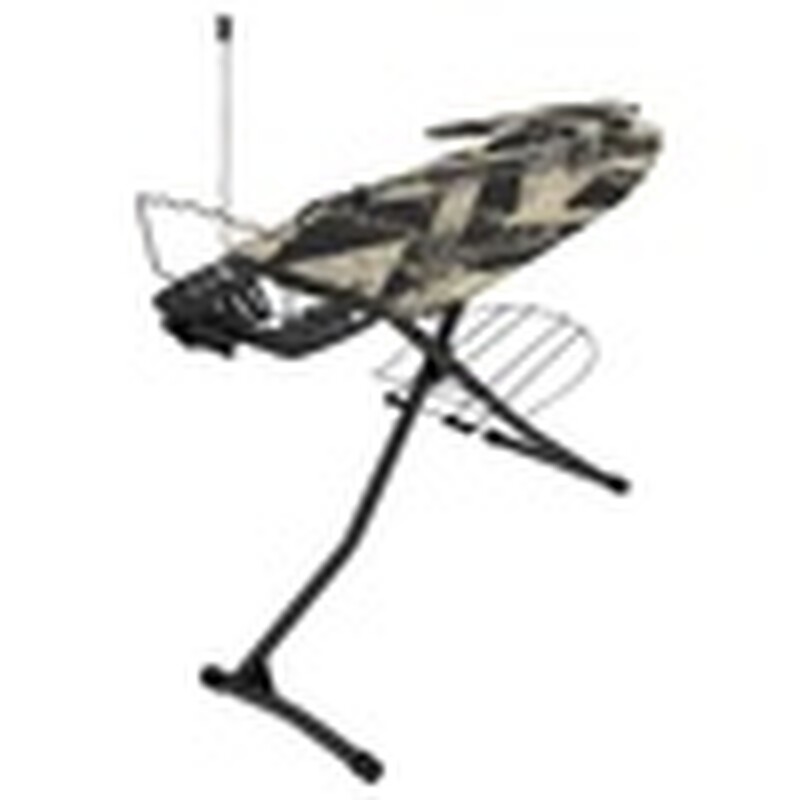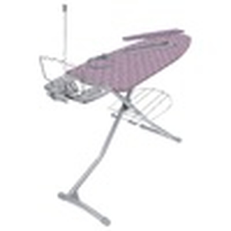 Гладильная доска с электросоединителем и подставкой под утюг, регулируемая по высоте. Удобная полка для белья и переносной подрукавник. Надёжная металлическая поверхность с отверстиями для пара. Съёмный чехол из хлопка с термоустойчивым покрытием. Плавно регулируемая высота до 1 м. Подставка под утюг с термоустойчивыми вставками. Кронштейн для провода утюга. Откидной держатель для плечиков. Полка для белья. Переносной подрукавник. Электрический соединитель 1,9 м. Устойчивые опоры с пластиковыми наконечниками для защиты напольного покрытия. Фиксация в сложенном виде.