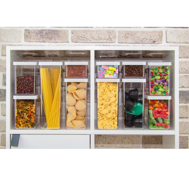 Незаменимый аксессуар на каждой кухне! Ёмкости помогут организовать порядок на полке. Предназначены для хранения различных сыпучих продуктов: сахара, кофе, муки, соли, круп, макаронных изделий, печенье и многого другого. Крышка выполнена по би-компонентной технологии. Таким образом внутренний край крышки сделан из эластомера. Вот почему банки герметичные, не пропускают влагу и запахи. Изделия имеют прозрачный корпус и крышку. Поэтому всегда видно содержимое и его количество, не важно где стоят ёмкости, в выдвижном или навесном ящике. Благодаря квадратной и прямоугольной форме можно легко комбинировать заполнение пространства, как в горизонтальной, так и в вертикальной плоскости. Изделия легко моются. Объём: 1,9л