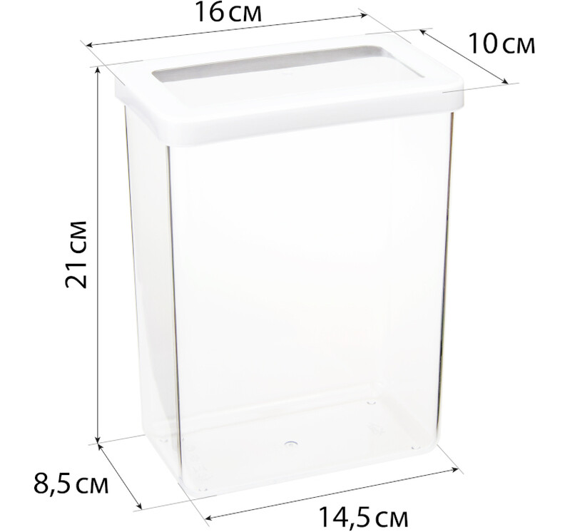 Изделия имеют прозрачный корпус и крышку. Поэтому всегда видно содержимое и его количество, не важно где стоят ёмкости, в выдвижном или навесном ящике.
