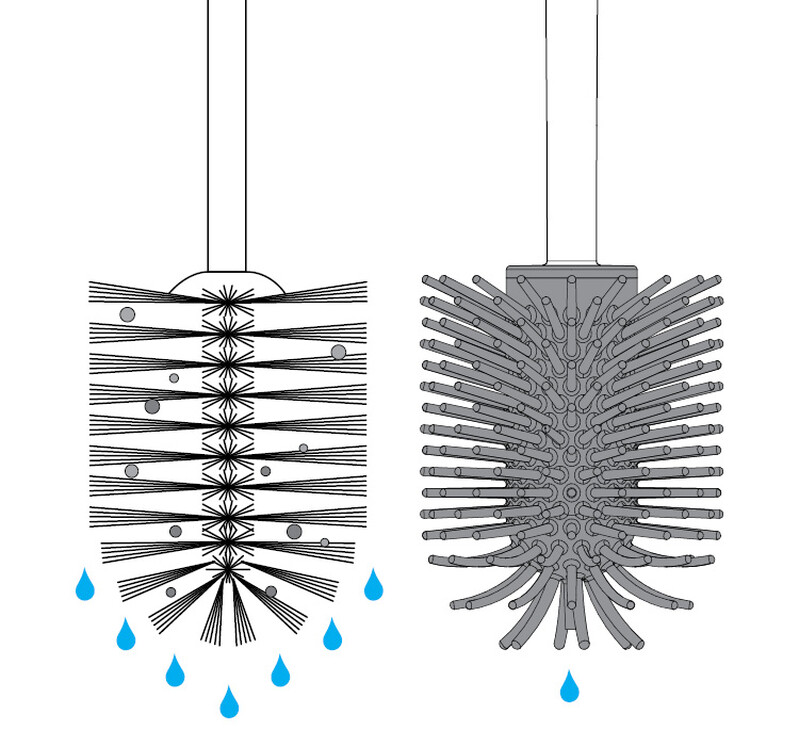 Комплект для туалета НАНО — впишется в любой интерьер. Ворсинки ерша выполнены из прорезиненного материала, благодаря этому вода сразу стекает и не капает с ворса. Так как ворс быстро просыхает, бактерии размножаются на много медленнее. Щетинки из эластомера не поцарапают поверхность, но при этом легко справятся с любыми загрязнениями. Комплект для туалета НАНО достаточно прочный, выдерживает частое использование и любое чистящее средство.