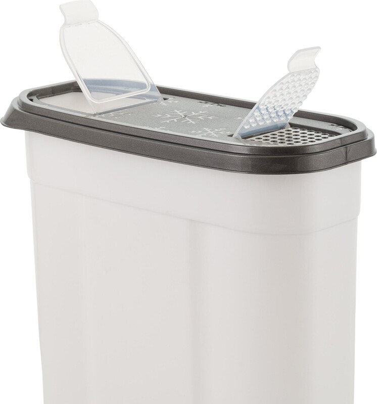 Контейнер для порошка Spin&Clean Step с крышкой-дозатором идеально подходит для хранения стирального порошка. Герметичный корпус и крышка сохраняют порошок сухим и чистым, а два вида дозаторов позволяют удобно насыпать и дозировать. Специальные ребра на корпусе не дают контейнеру выскальзывать из рук. Контейнер изготовлен из безопасного пластика, не содержит фенолов и фталатов и не вступает в реакцию с моющими средствами. С контейнером для порошка STEP от Spin&Clean создать чистоту и порядок легко и быстро.