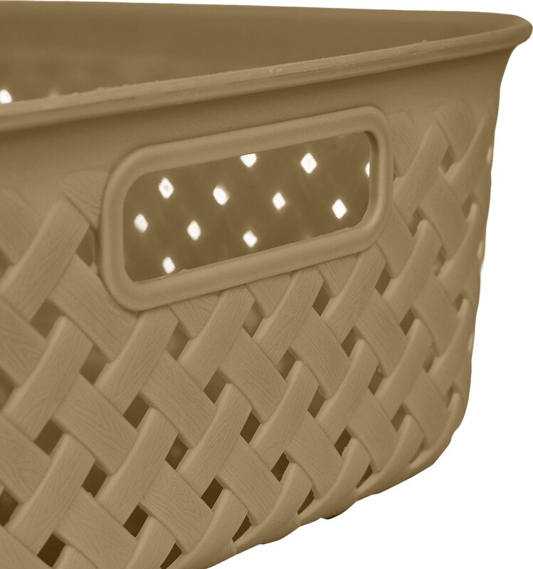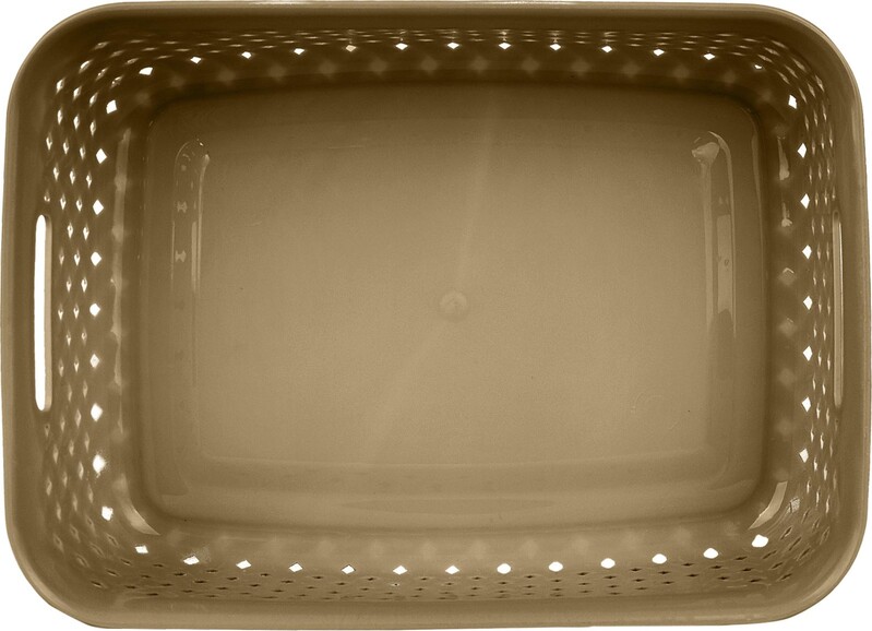 Корзина изготовлена из легкого и прочного пластика, поэтому подойдет для помещений с повышенной влажностью. Безопасный материал пригоден для хранения пищевых продуктов и детских игрушек. Сэкономить пространство поможет прямоугольная форма корзинки. Линия Rattan, в состав которой входят корзины для белья и для хранения различного литража поможет организовать пространство в едином стиле. Природное плетение и природные цвета впишутся в любой интерьер. Сложить разнообразные мелочи, канцелярию, косметику или ванные принадлежности – для всего пригодится корзинка «Рогожка». Ручки по бокам удобны для переноса.