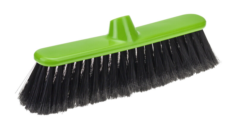 Щетка для пола из качественной плотной щетины удобна для подметания даже самого мелкого мусора.