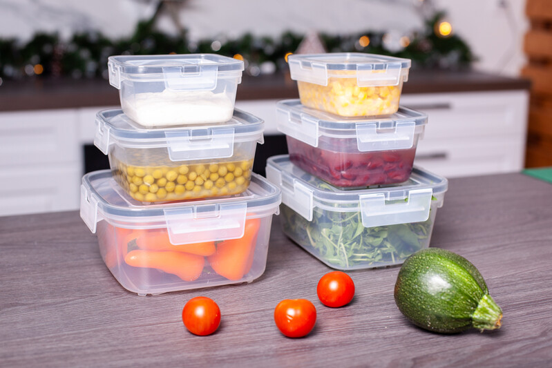 Комплект контейнеров для продуктов прямоугольных 0,35л+0,7л+1,3л с уплотнителем и четырьмя замками - легких, минималистичных и надежных. Плотная крышка с мягким вкладным профилем сохранит свежесть продуктов и предотвратит распространение запахов. Мерная шкала на корпусе позволит отмерить необходимое количество продукта. Линейка включает контейнеры разных форм и объемов от 0,35л до 1,5л, а также наборы. Крышка и донышко контейнера имеют специальные фиксаторы, с помощью которых к крышке можно прищёлкнуть сверху другой контейнер того же размера для формирования надёжной стопки. Пустые контейнеры компактно хранятся в шкафу один в другом. Может использоваться в СВЧ для разогрева блюд с приоткрытой крышкой (не более 1-1,5 минуты). Изготавливается из перерабатываемого безопасного пищевого полипропилена, не содержит бисфенола А.