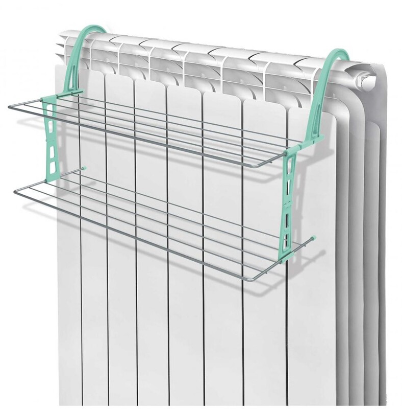 Предназначена для установки на батарею радиатора, поможет быстро просушить небольшие вещи во время отопительного сезона, две полки, специальные крепления на сушилке легко устанавливаются на батарею, компактная, занимает минимум места, стальные струны с антикоррозийным покрытием, удобный механизм складывания.