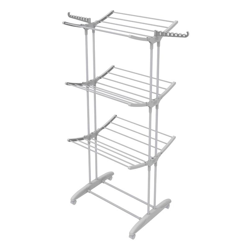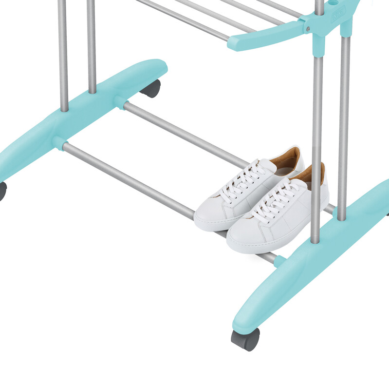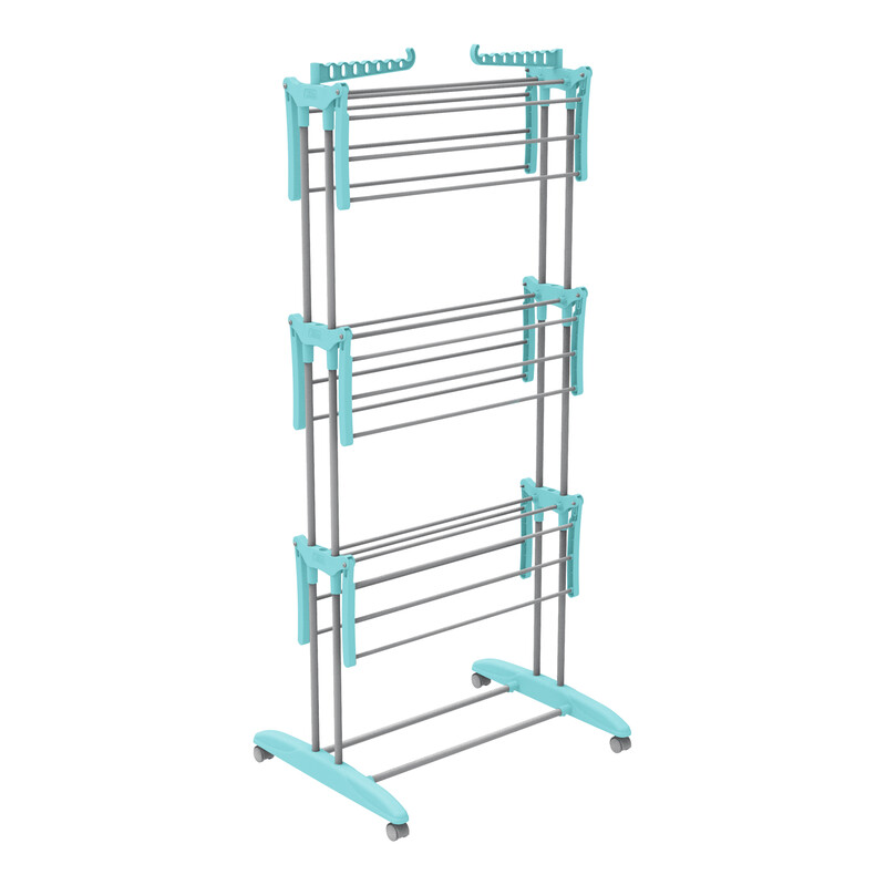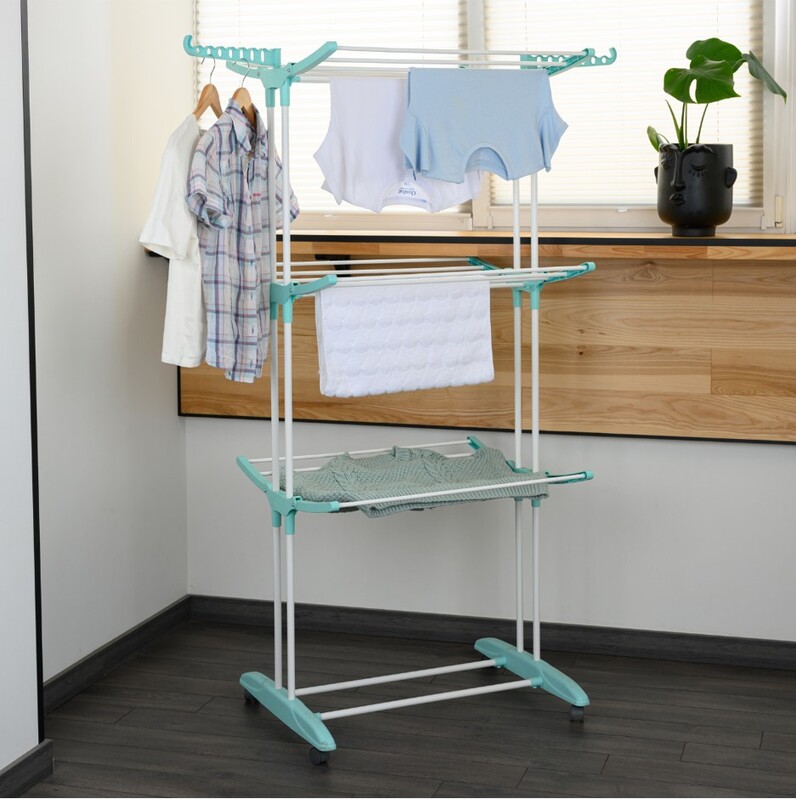 Вертикальная складная напольная сушилка для белья, продуманная конструкция для максимально комфортного просушивания белья. Полотно из металлической трубки для быстрой сушки белья без заломов. Горизонтальные полки для сушки трикотажных вещей. Поворотные держатели для плечиков вместимостью до 14 штук. Колеса для удобного перемещения. Длина сушильного полотна 20м.