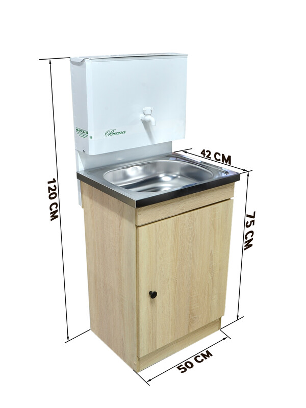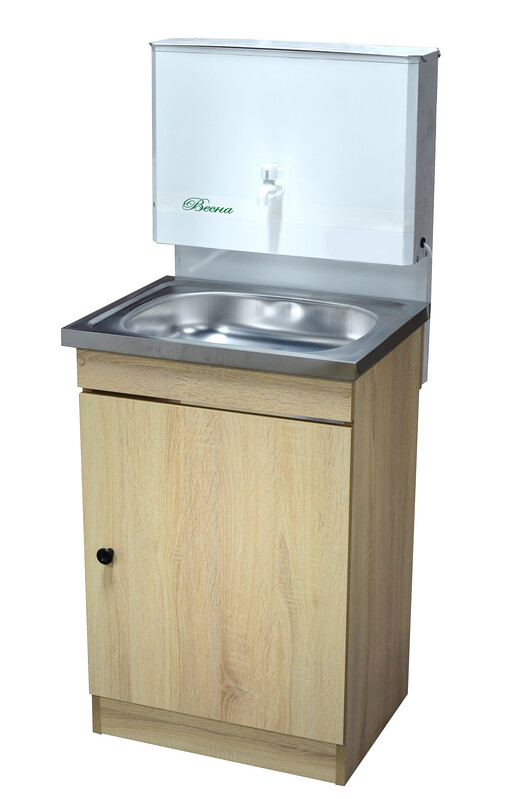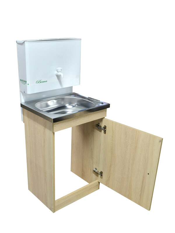 Умывальник с водонагревателем предназначен для использования в помещениях, где отсутствует центральное водоснабжение. Умывальник укомплектован мойкой из нержавеющей стали и ламинатной тумбой.