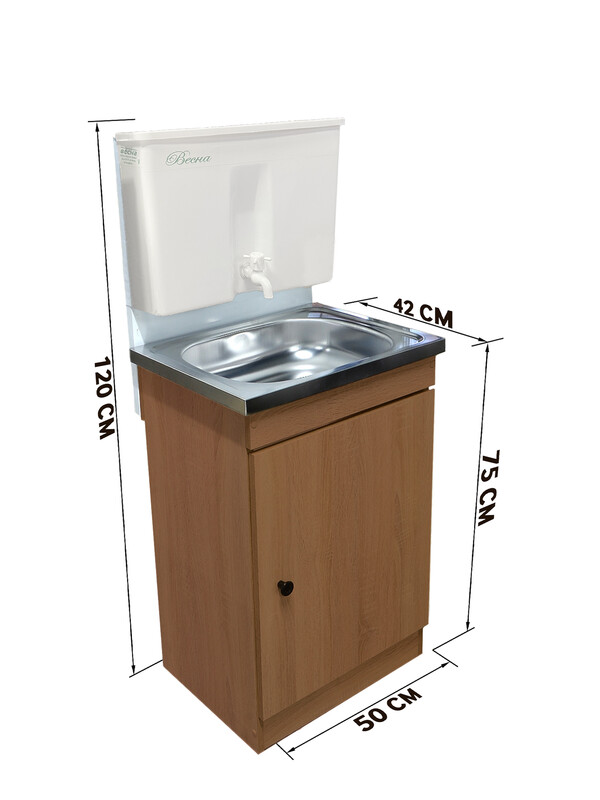 Умывальник "Весна" без ЭВН Пластиковый бак (тумба ЛДСП Ольха темный, мойка Нержавейка 40*50, бак 17л)