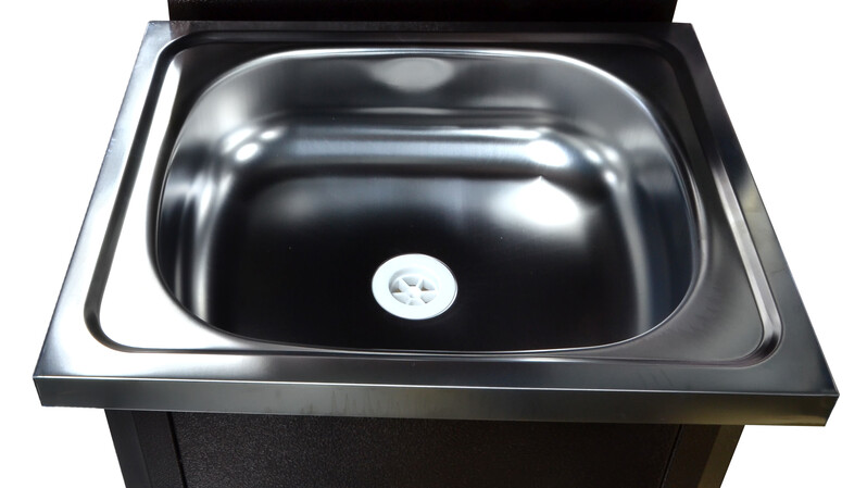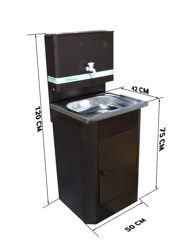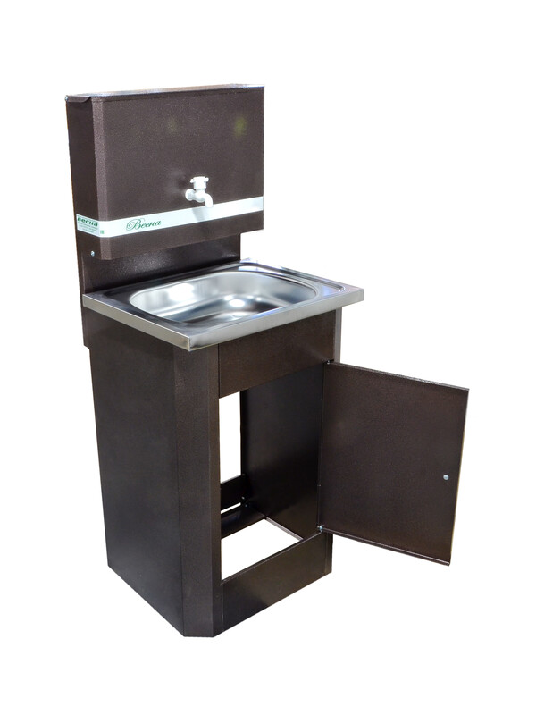 Умывальник используется в помещениях без центрального водоснабжения. Умывальник укомплектован мойкой из нержавеющей стали и металлической тумбой.