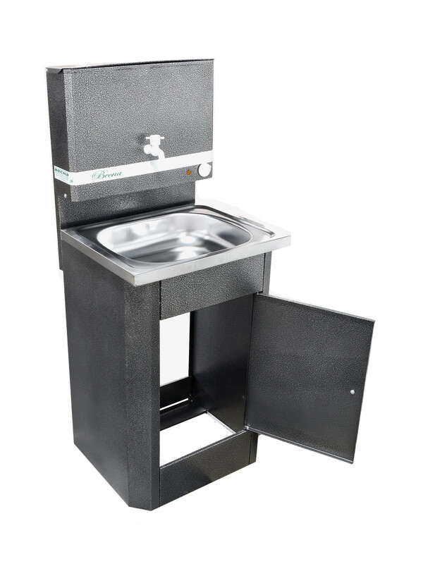 Умывальник "Весна" с ЭВН (тумба, нерж. мойка 40*50,V-бака 17л.) серебро
