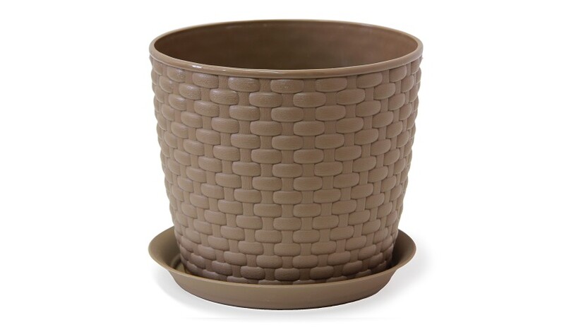IDEA. Кашпо РОТАНГ d=155мм 2л.с поддоном Коричневый ротанг 15.5х13.6 ("М-пластика") (М 3081)