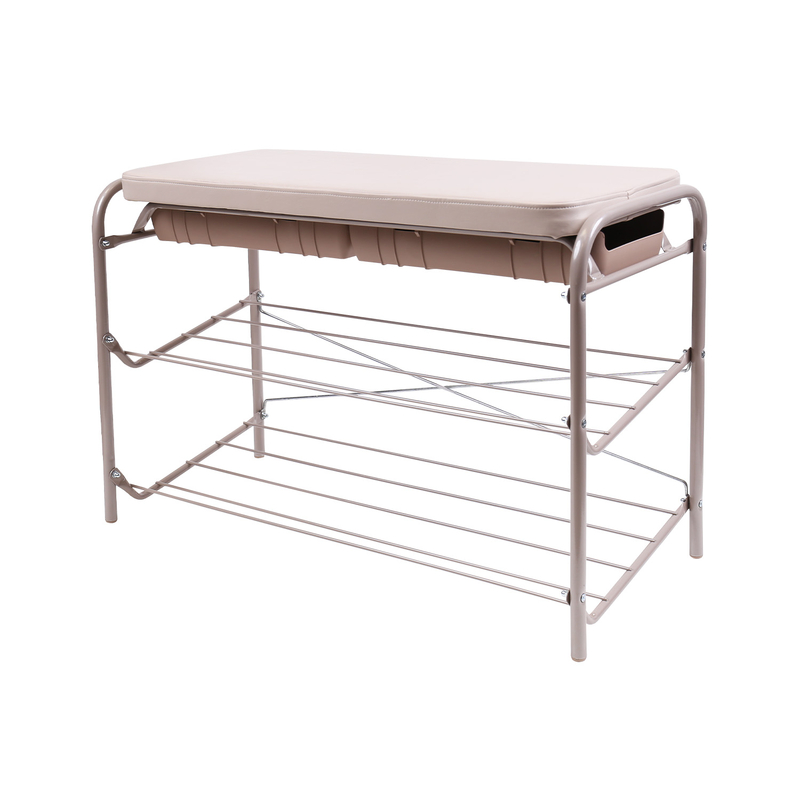 Nika. Этажерка для обуви разборная (790х330х510) 2 полки, с ящиком, сиденье винилискожа СЛОН КОСТЬ каркас БЕЖЕВЫЙ ЭТП3-1/БЖ