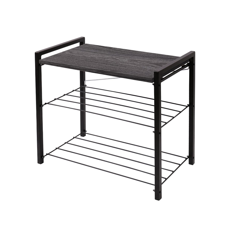 Nika. Этажерка для обуви разборная (600х553х300) 3 полки, сиденье мягкое велюр ГРАФИТ каркас ЧЕРНЫЙ ЭКТ3-60В/ГР