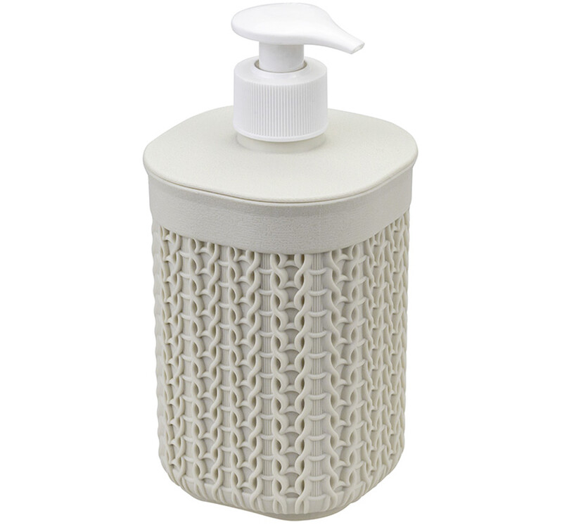 IDEA. Диспенсер для мыла "Вязание" Белый Ротанг 8,5х8,5х19см ("М-пластика") (М 2239)